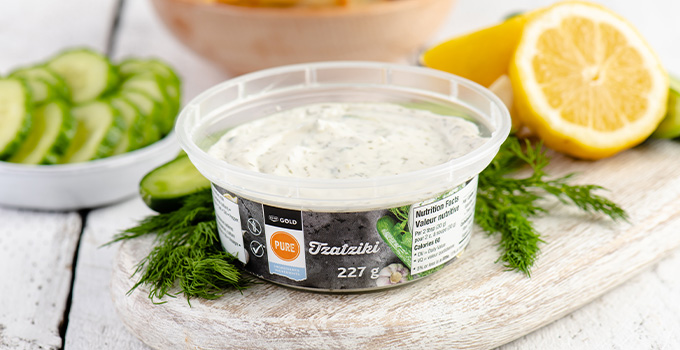 Look for Co-op Gold Pure Tzatziki in the fresh section of your local Co-op Food Store.