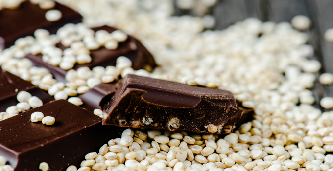 Chocolate that packs a crunch: CO-OP GOLD PURE puts a new spin on a familiar sensation with the addition of an ancient grain. Roasted Quinoa Dark Chocolate uses puffed quinoa — in place of the traditional puffed rice — to add some snap to every bite.
