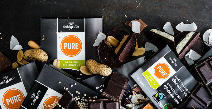The six new CO-OP GOLD PURE chocolate bars are gluten free and made in Canada without any artificial colouring, flavouring or preservatives. The new bars offer an elevated, all-natural take on traditional confectionary chocolate.