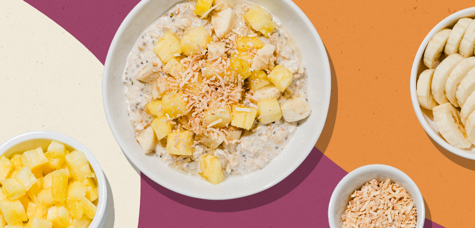 This easy breakfast tastes like you’re on vacation and keeps the summer feeling alive, thanks to the combination of coconut, banana and pineapple. Throw in some honey for added sweetness and chia, hemp and buckwheat seeds for extra nutrition. A glass of orange juice (or mimosa) will complete the holiday vibe.Everyone’s favourite fall flavours — pumpkin, maple syrup, raisins and cinnamon — bring a comfy, cozy feel to this recipe. Garnish with apple matchsticks and pumpkin seeds for a little crunch. Pair with a glass of milk or cup of Co-operative Coffee for the perfect fall breakfast.