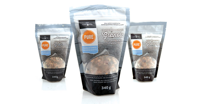 New CO-OP® GOLD PURE Granola is available in three flavours: apricots and seeds, cranberry hazelnut, and coconut almond.
