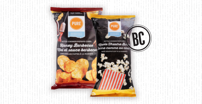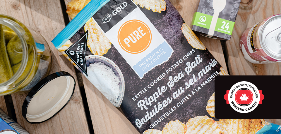 Co-op Gold Pure Kettle Cooked Potato Chips and Popcorn are made by Naturally Homegrown Foods in Surrey, B.C., using locally sourced ingredients – making them truly and proudly Western Canadian products.