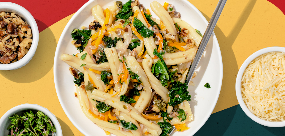 Butternut Squash, Walnut and Kale Pasta