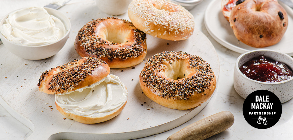 - Brush the top and sides of the bagels with egg wash and coat with Club House Signature Blends Everything Bagel.