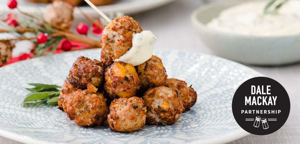 Curried Apricot Meatballs with Sage Mayo