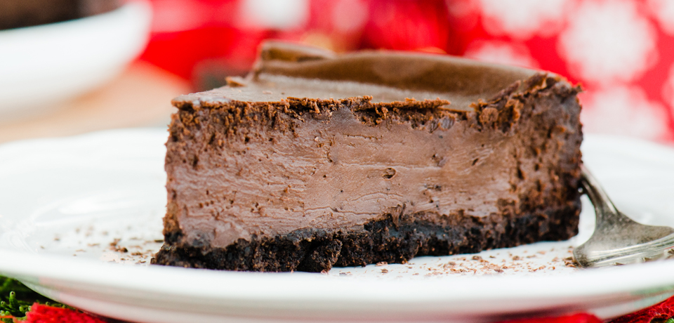 In a bowl set over a pot of lightly simmering water, melt the chocolate. Remove chocolate from heat and allow it to cool slightly. It needs to still be pourable. In a food processor, blend cream cheese, sugar and cocoa powder; puree the mixture until smooth. With the blender still running, add eggs one at time until incorporated. Pour in the chocolate and blend.