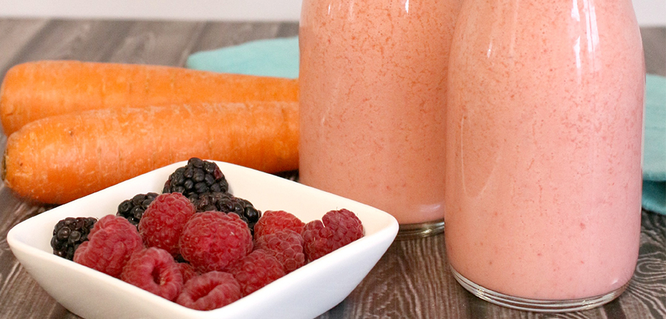 Pour all the ingredients into the blender and blend on high for approximately 30 seconds. This recipe makes two large smoothies.