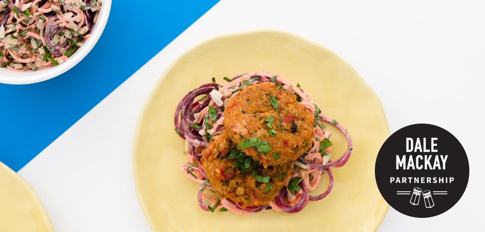 Veggie Slaw: Place all the slaw ingredients in a medium-sized bowl and mix well to combine. Cover and place in fridge until ready to serve.