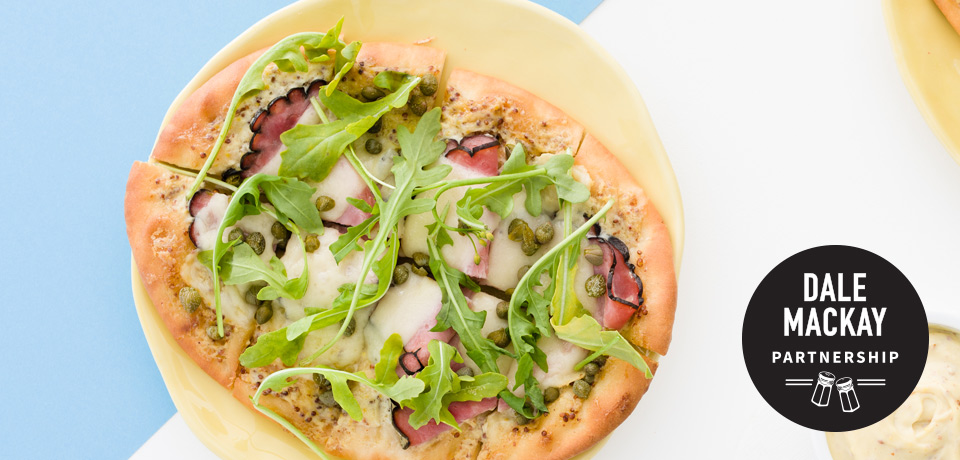 Top each naan with equal amounts of ham and cheese. Transfer baking sheet to preheated oven. Bake for 10 to 12 minutes or until the naan is golden brown around the edges. Remove from oven and allow the naan pizzas to cool slightly. Sprinkle the pizzas evenly with capers and arugula. Cut each naan into six to eight pieces. Enjoy!