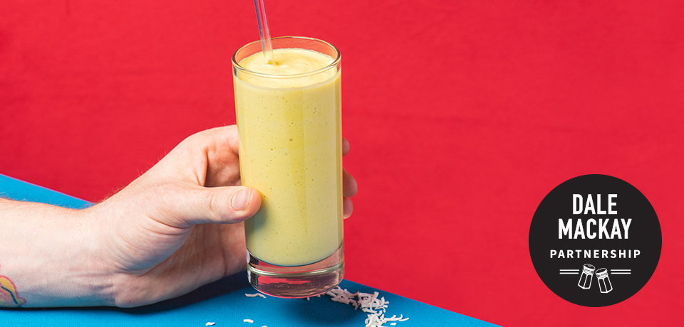 Place all ingredients in a blender. Blend on high for one to two minutes and enjoy. For best results, use frozen mango to ensure a chilled and refreshing smoothie.