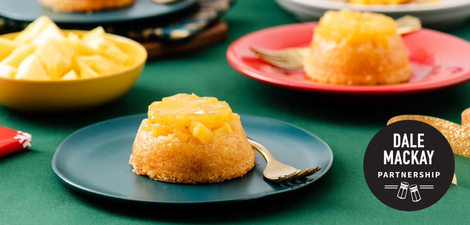 Place the diced pineapple into the greased and lined tins, and add one tablespoon of golden syrup to each. Divide the cake batter evenly amongst the tins and bake for 20 –25 minutes until a toothpick inserted in the centre comes out clean. Enjoy warm or at room temperature.