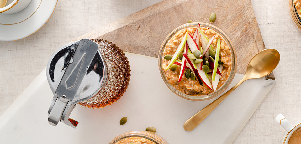 - Divide among jars or bowls and add fresh apple and pumpkin seeds as a garnish.