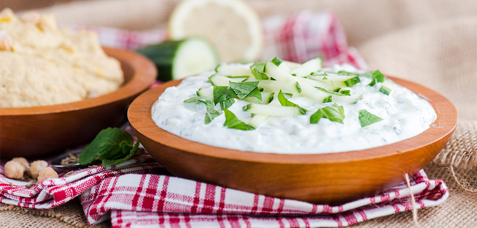 Grate the cucumber on a box grater. Transfer to a bowl, lightly season with salt and set aside for 20 minutes to draw out the excess moisture. Lightly squeeze out most of the remaining water and transfer to a new bowl. Combine with remaining ingredients. Season with salt.