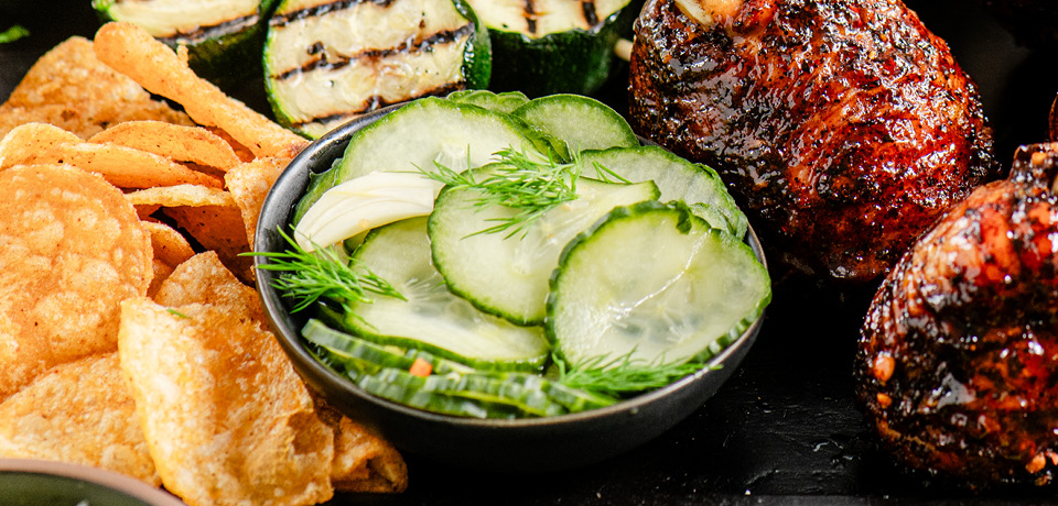 | 1¾ to 2 | pounds small English cucumbers (about 6), cut into spears or coins | |