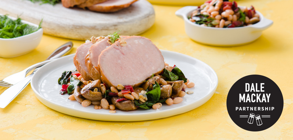 In a saucepan over medium-low heat, combine the beans, sautéed mushrooms and Swiss chard stems, along with the Swiss chard leaves, dill, olive oil, lemon juice and lemon zest. Stir to combine the ingredients. Continue to stir until hot. Divide the vegetable mixture between four plates and top with sliced tenderloin. Sprinkle with toasted oats.
