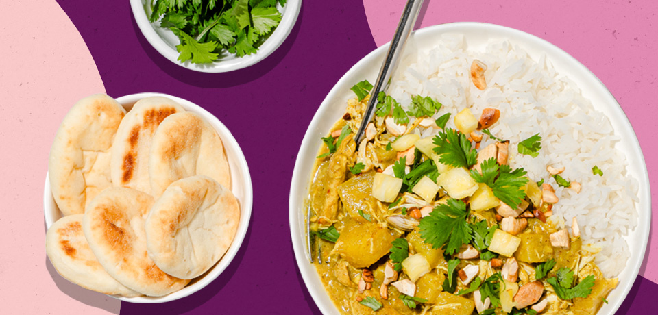 - Serve with cooked rice. Garnish with fresh pineapple, cilantro and cashews.