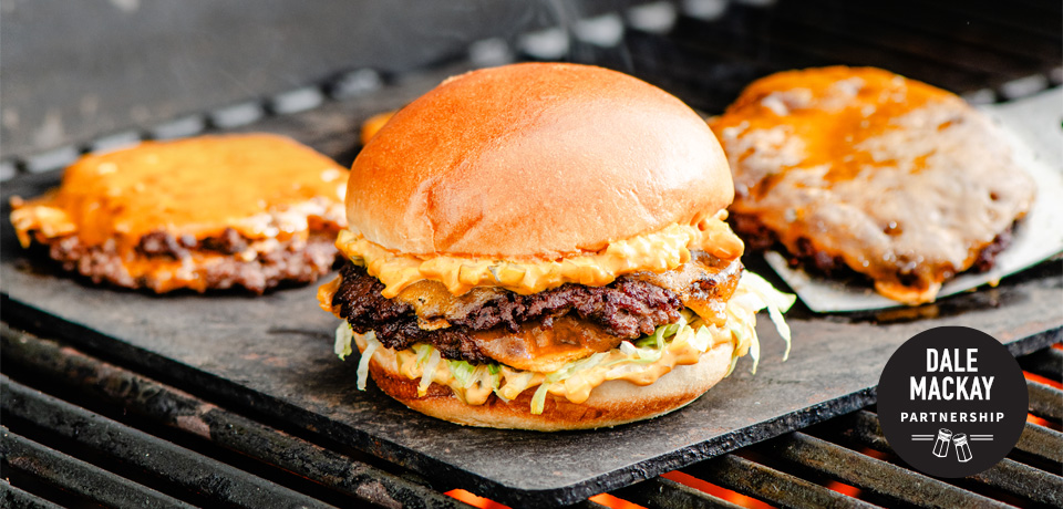 - Place balls on the flat top, top each with a parchment square and use a large metal spatula, burger press, or bottom of a pot to press down evenly until patty is ¼-inch thick. Remove parchment and season patties with salt. Cook patties for 2 minutes, then flip and top with a slice of cheese. Cook for another 2 minutes, then remove from heat. Their internal temperature should be 71°C (160°F).