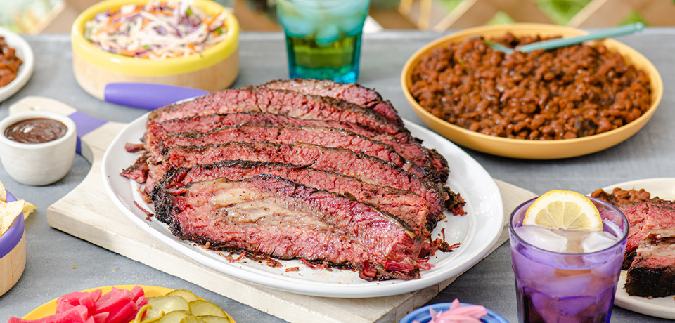Chef’s Notes: To feed a large group, ask your Co-op butcher for a 12–16 lb. “full packer” brisket. A full packer contains two distinct parts that cook differently: the point (the oddly shaped, more marbled smaller part on top) and the flat. For a smaller group, ask for the flat, which weighs 6–10 lb. The cooking instructions remain the same, but the cooking time will decrease significantly. In my opinion, cooking the whole packer is worth the extra effort: the point is really delicious because of that marbling!