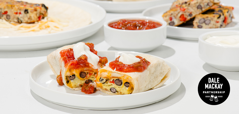 • Lay tortillas on the counter. Evenly divide shredded Tex-Mex cheese between tortillas, laying a strip in the middle of each. Place egg rectangle on the cheese and wrap, starting with folding in the ends and then rolling up tight. These are great on their own, but even better with Co-op Gold salsa and sour cream.