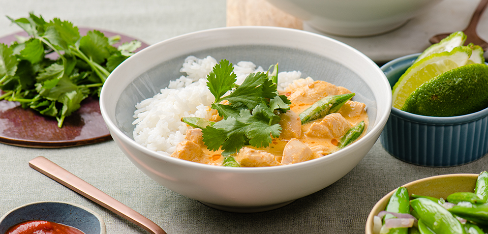- To serve, top rice with chicken curry and garnish with cilantro.