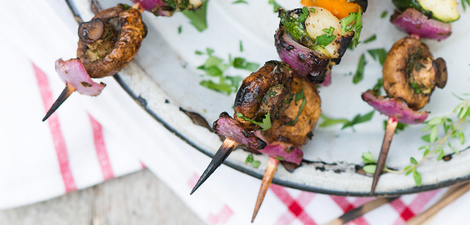 Thread the veggie pieces alternately onto skewers, placing at least two pieces of vegetables onto each skewer. Brush with olive oil and grill until tender.