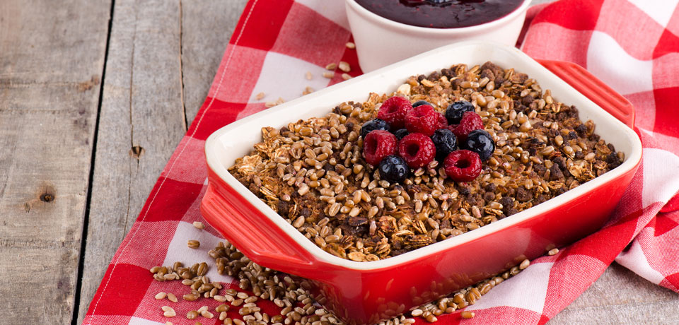 While the crumble is still hot sprinkle the wheat berries on top for a nutritious and flavorful finish.