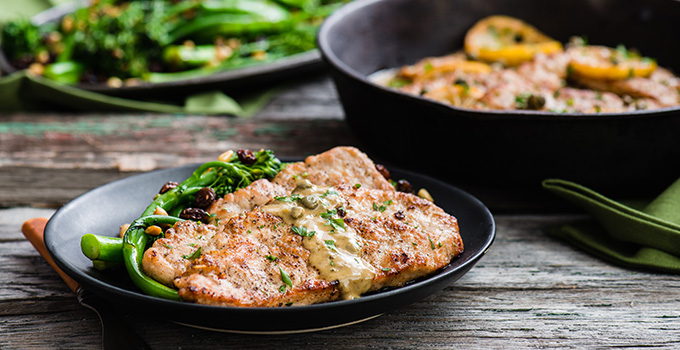 The main course traditionally uses a thin meat. While it was usually veal, pork and chicken are often made as a substitute. Make pork picatta by slicing three to four ounce pieces of pork loin and pounding flat. Bread the pork using an egg wash and bread crumbs; season with salt, pepper and parmesan and then fry. CO-OP® GOLD Lemon Caper Aioli adds additional flavour to the dish.