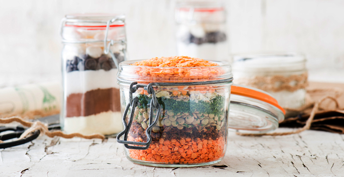 There’s no limit to foods fit for a jar either. Prepare a mix of dry ingredients – for pancakes, cookies, hot chocolate, soup or s’mores – and attach the recipe.