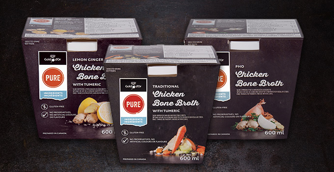 Although bone broth can be made from beef, fish, lamb or other types of bones, Co-op Gold Pure Bone Broths are made with chicken bones sourced in Alberta. Natural seasonings are added to give each broth a distinct flavour.