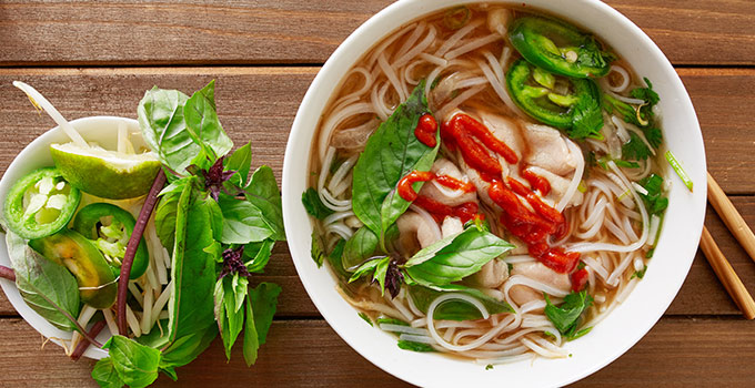 If you have it on hand, it’s so quick and easy to throw together a nourishing soup with bone broth. Slice and sauté celery, carrots and garlic and add them to a pot of bone broth with some shredded leftover chicken for a simple 10-minute meal. Or try pho bone broth with some rice noodles and a fresh basil garnish for an easy Vietnamese-inspired soup.