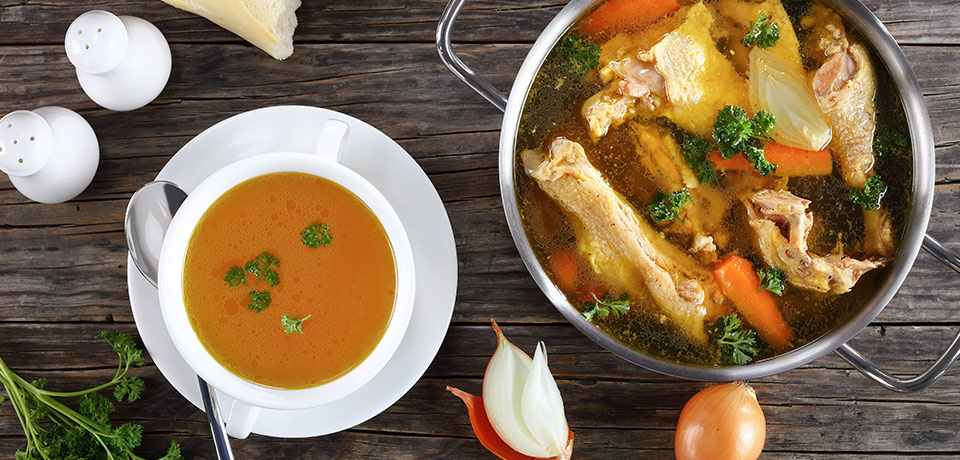 To understand bone broth, first you should understand that it’s not quite a broth and it’s not quite a stock. Broth is made by simmering herbs and spices, vegetables and meat for around 45 minutes to two hours. Stock adds more bones to the recipe and increases the cooking time to four to six hours.